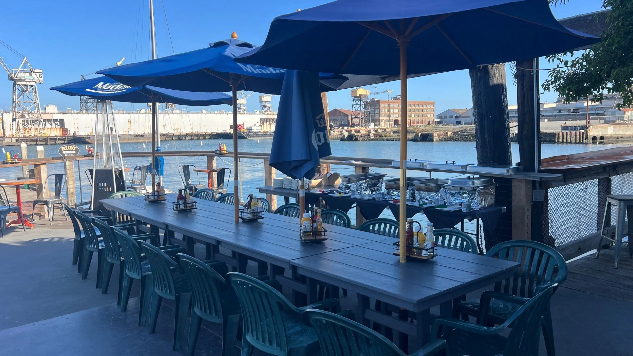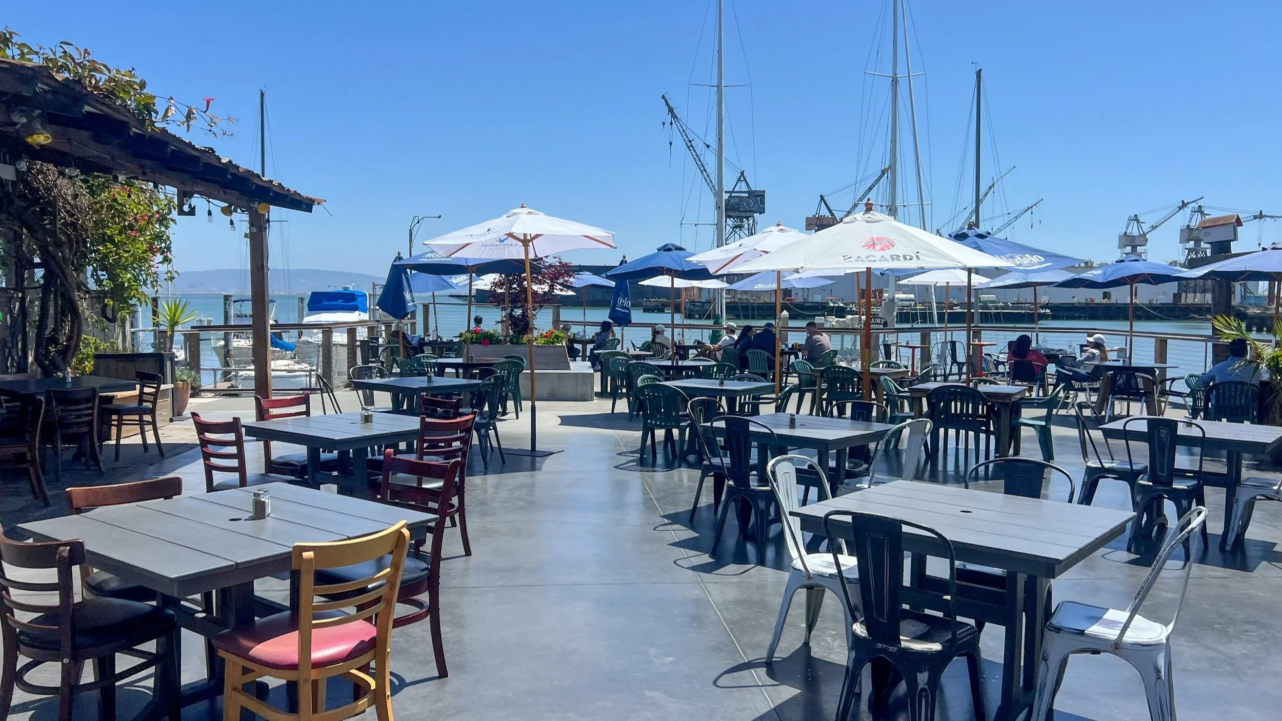 Our stunning Point offers breathtaking harbor views with sailboats and marina scenery. This intimate section of our waterfront patio features a relaxed atmosphere where guests can enjoy the gentle sea breeze and uninterrupted harbor views.